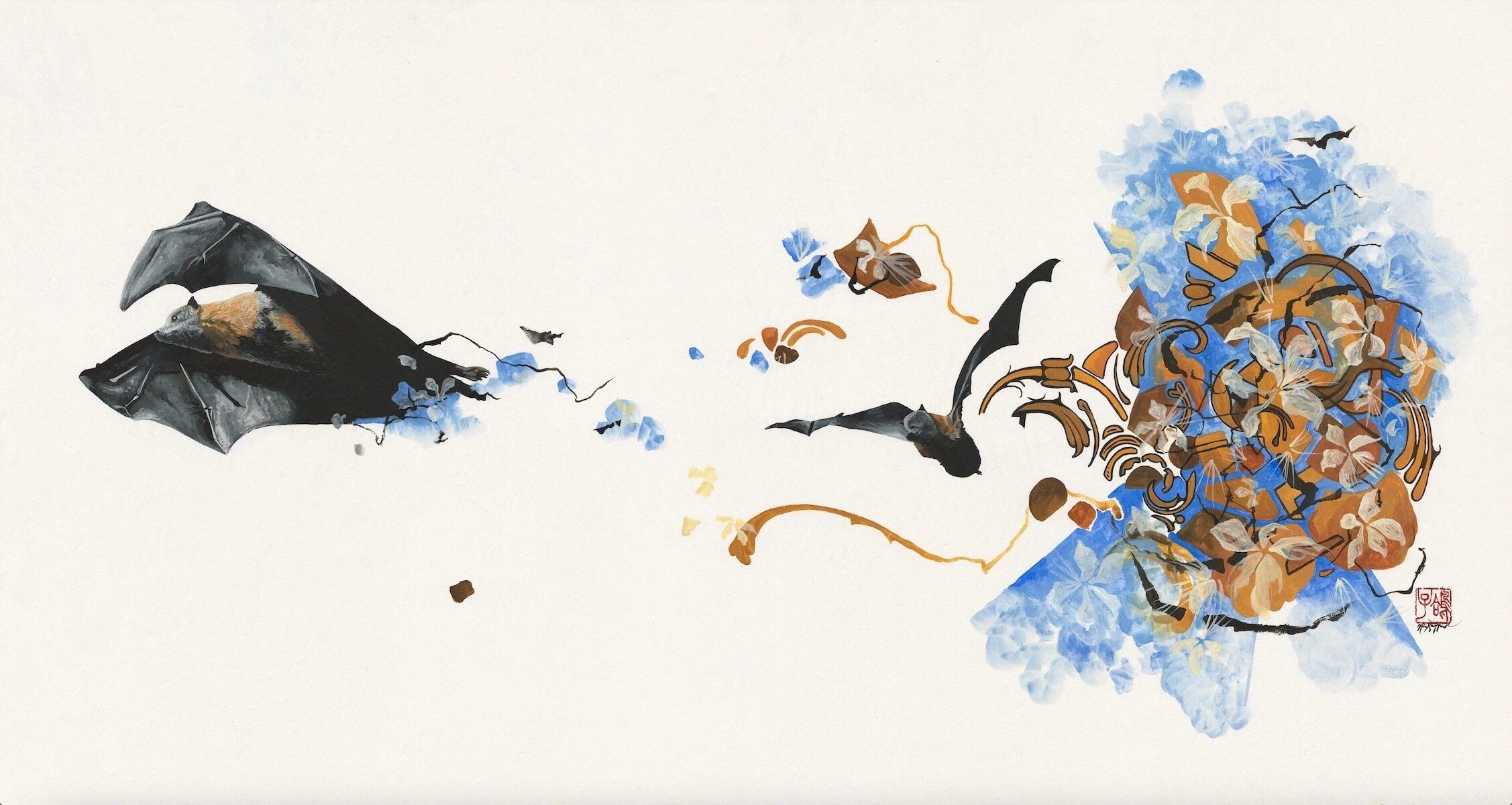 Traditional Chinese watercolor & Ink on Mounted Chinese Rice paper
