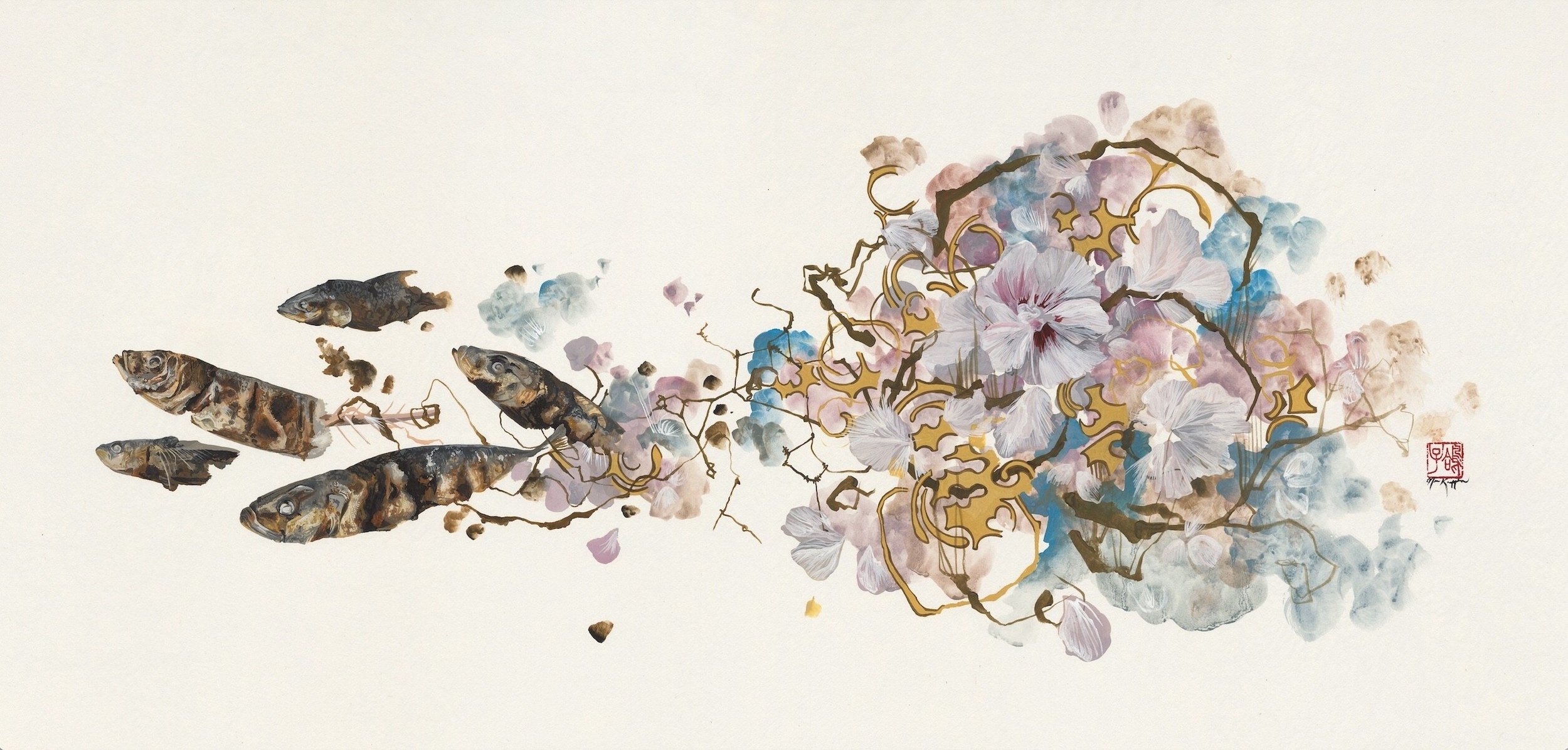 Traditional Chinese watercolor & Ink on Mounted Chinese Rice paper