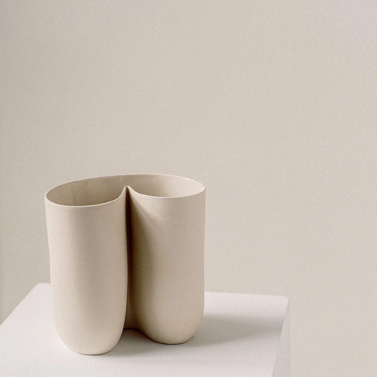 uses plaster and porcelain to explore what she calls “temporary brilliance” or the fleeting collision of imagination and inhibition that often frames our human experience. Each piece is curious and playful, acting as a soft invitation to savor the present moment. Her work is best identified by oblong shapes and bulbous moments that blur the line between functional objects and sculptural forms.