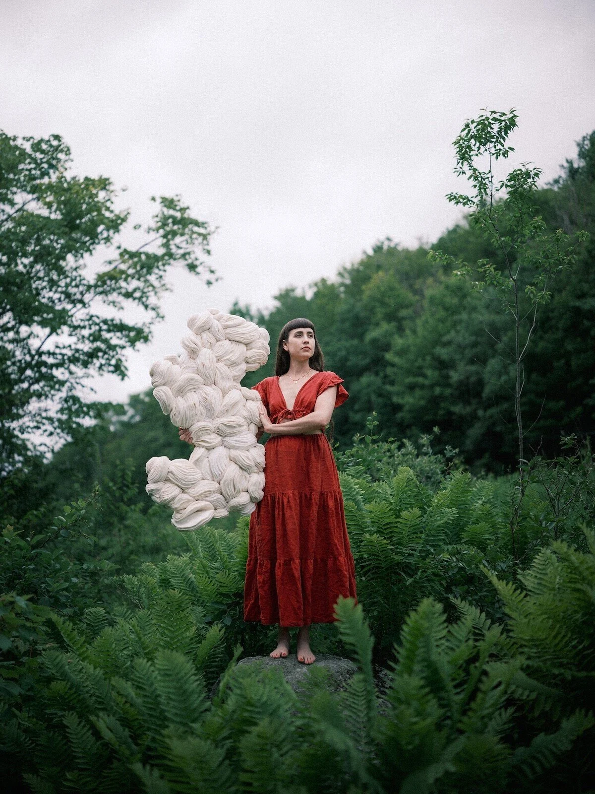 is an internationally recognized sculptor and fiber artist, constructing her work through alternative material manipulation blended with traditional textile techniques. As a vegan artist, she uses plant-based, recycled, and upcycled materials to ensure her work has a minimal impact on our magnificent planet.
