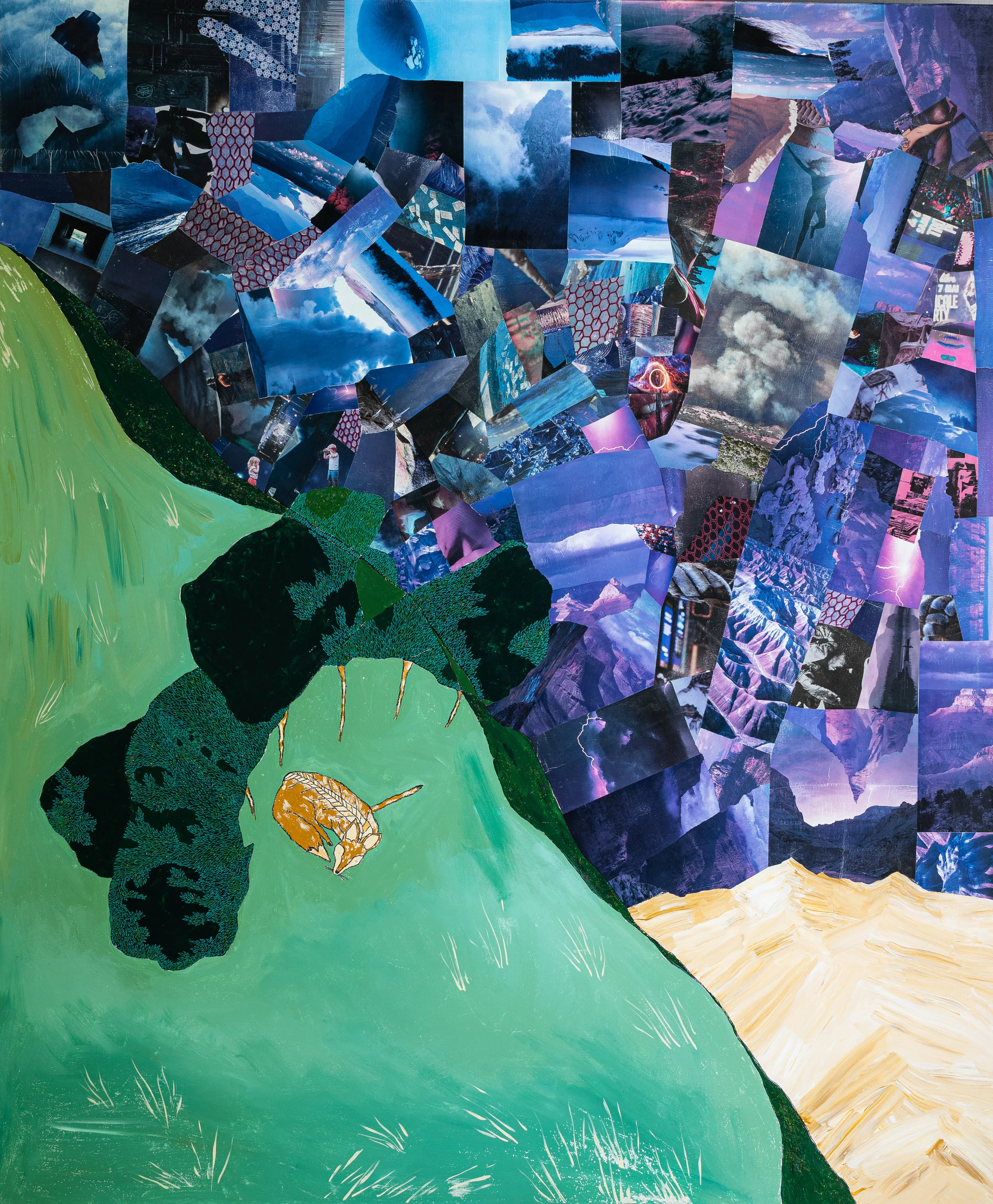 Collage, Acrylic, Oil, and GLitter on Canvas
