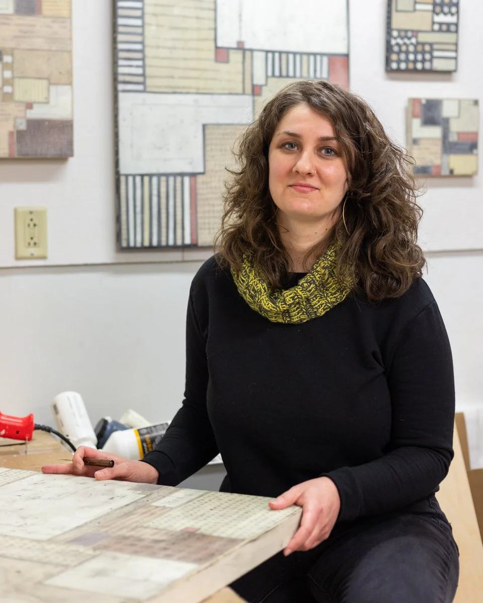Her work aims to illustrate the beauty, fragility, and truth of the present moment; the meditative poetry that can be found in the quiet and mundane. Tasiopoulos Works with recycled and found vintage papers encased beneath a layer of beeswax, gravitating toward soft, muted colors — warmed and stained by time. Repetitive patterns and primitive marks carved and scraped into the surface of the wax speak to the imperfections of the human hand and the vulnerability of materiality. a meditation on transience, transformation, and the beauty of imperfection, her practice is An embrace of what is — as it is.