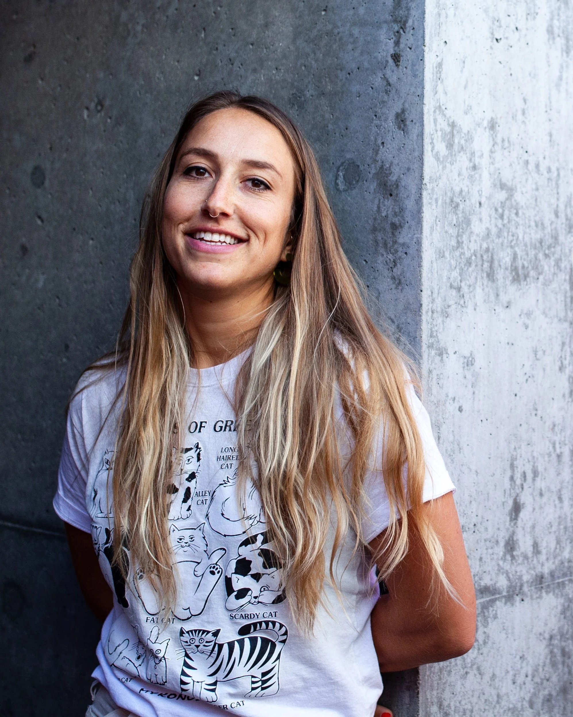 is a Textile artist from Oakland, California. She received a BFA in Textiles from California College of the Arts in Oakland, Ca in 2012. Much of her inspiration is drawn from architectural patterns such as wrought iron fences, tiles, and brick. Her work is inspired by themes of grief, loss, change, and the process of rebuilding oneself. Her highly repetitive and detailed work is simultaneously chaotic and calming, with currents of order and repetition. Using only white thread, she experiments with the direction of her stitches and how the light reacts to the thread, allowing her pieces to be experienced with different levels of dimension.